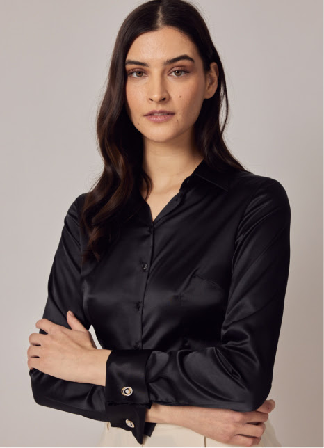 ЧЁРНАЯ САТИНОВАЯ ПРИТАЛЕННАЯ РУБАШКА - ПОД ЗАПОНКУ